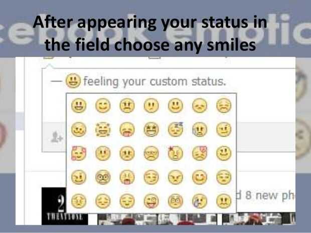 Paso 7: Después de aparecer su estado en el campo elija cualquier sonrisas