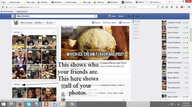 Estos dos muestran todos su amigos y fotos. Las fotos tienen tres opciones: fotos de (insertar nombre), (insertar nombre) fotos y álbumes. Todo lo cual es bastante autoexplicativo.