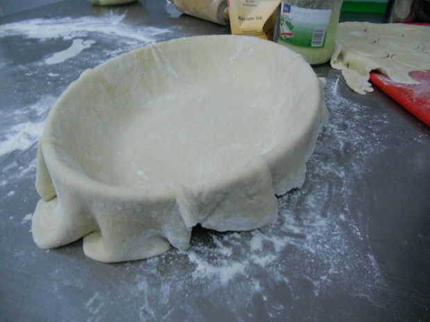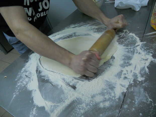 U primera poner la levadura en el agua caliente, luego añadir los demás ingredientes revuelva hasta disolver, Inicio agregando flores hasta conseguirá demasiado gruesa para revolver. Espolvorear una limpia trabajando la superficie con harina y ponga la masa sobre la superficie. Amasar agregando harina Si es necesario hasta que la masa se siente suave y elástica. Luego dejarlo en un recipiente engrasado para una o dos horas a temperatura ambiente para crecer. Esta vez he usado para cortar la plantilla