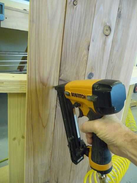 usé una clavadora para sujetar las placas al frente de la estructura.
