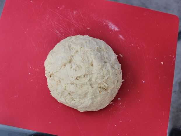 Comience con 3 tazas de yogur y 3 tazas de harina. Añada pequeñas cantidades de harina para lograr la consistencia adecuada. Debe ser firme y un poco pegajoso pero no se pegue y conseguir todo todo eliminar cualquier anillos especialmente si él realmente pasar 3 meses de sueldo que se pondrá sucio. Seguir a amasar bien una buena sólidas 5 minutos debe hacer el truco, entonces me gusta dejarlo reposar durante 10 minutos o así que después lo siento es la consistencia adecuada para dejarlo expandir y hacer su propia reacción química poco.