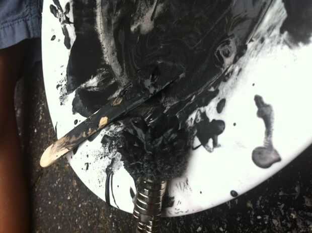 y añade una buena cantidad (aproximadamente 1/4 taza) de óxido de hierro a cada mezcla.