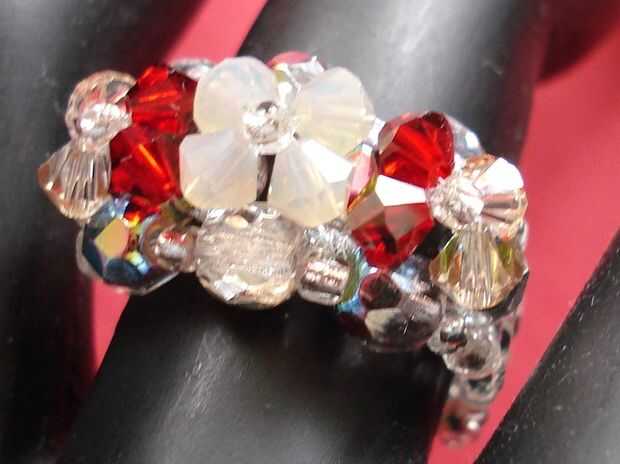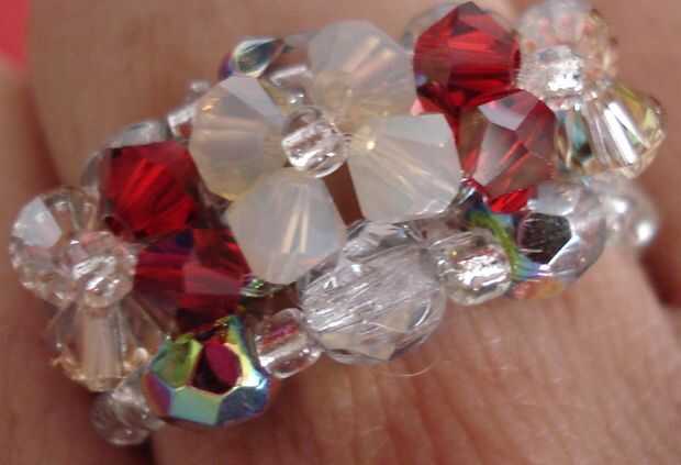Usted puede jugar con este diseño, los colores o incluso las flores, si tienes una flor de manos pequeñas o 2 flores. Usted puede incluso hacer dos filas de esta corriente del diseño va verticalmente (hacia arriba con los dedos en vez de a través de). Diviértete con este fácil 3 flor cristal anillo, tan versátil y fácil de hacer.