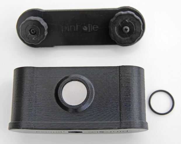 El agujero de alfiler simplemente cae en el hueco delantero Si tienes un disco de agujero de alfiler 20mm (o 3/4") con un orificio de 0,20 mm. Estos se pueden encontrar en eBay, o usted puede hacer su propia (google "haciendo un agujero de alfiler").
