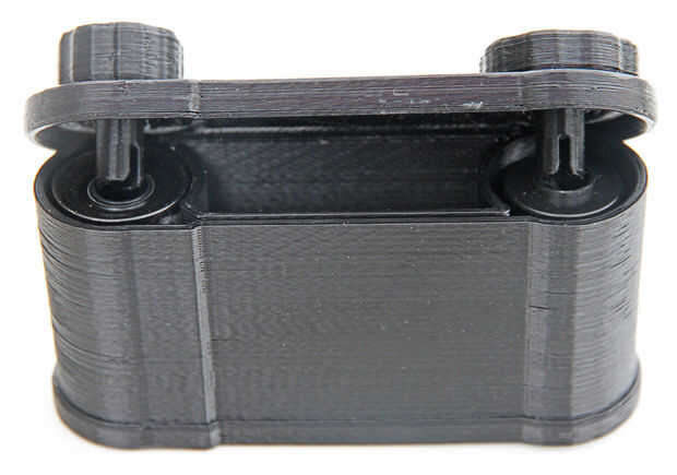 Hay una perilla de devanadera (uno más grande) y un botón de rebobinado (uno más pequeño con una "R"). Cada uno debe estar conectado a un eje enrollador con un tornillo (muy recomendado como necesitemos añadir material de fricción o sustituir una parte) o pegamento. Orientar la cámara con el agujero mirando hacia fuera como si vas a tomar una foto. Coloque la tapa a la cámara. El botón de retroceso va a la izquierda y el mando de devanadera va a la derecha (ver foto). Inserte los ejes de la devanadera a través de la parte inferior de la placa superior, ajuste las perillas en la parte superior y atornille los dos tornillos M3 hasta que acaba de convertirse en lo suficientemente apretadas como para sostener las perillas en sin bamboleo (Recuerde que estas son de plástico y es fácil de pelar los hilos).