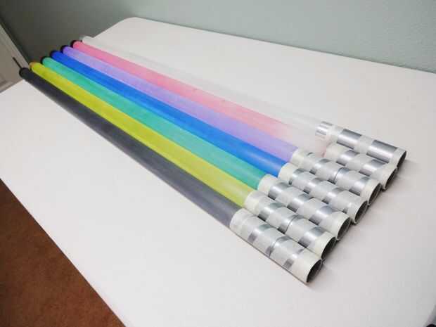 Para hacer las hojas cabe en las empuñaduras de tubo de cartón, tuve que añadir un poco de masa con cinta adhesiva.