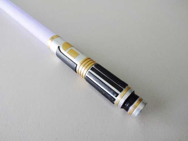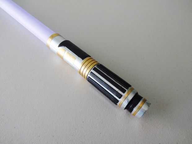 Mace Windu tiene un fresco que destaca violeta sable de oro.