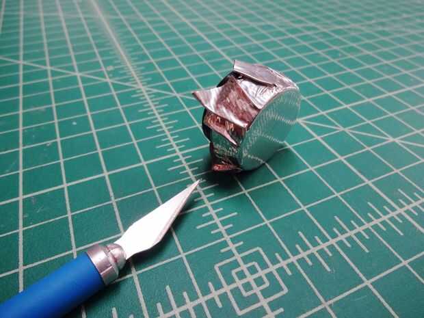 Estos son hechos por estirar un pedazo de cinta de cromo sobre el final orientada al interior de la tapa y cortar limpiamente por lo que puede ser insertado en el extremo del protector de tubo. He añadido un trozo de cinta de cromo al final exteriores de las tapas, sólo para las miradas.