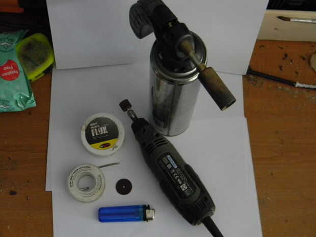 - Sierra para metales o herramienta multiusos con disco de corte y lijado de la rueda.