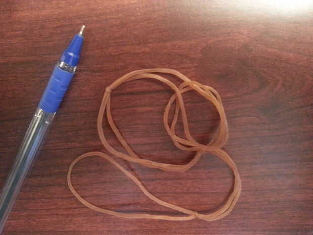 Basta de bandas de goma para el agarre. Dependiendo del tamaño de las gomas, entre 5 y 9 deben hacer. Puedes hacer una cadena de goma para mayor comodidad o utilizarlos individualmente si usted quiere utilizar para otra cosa más adelante.