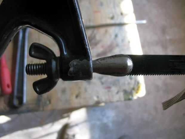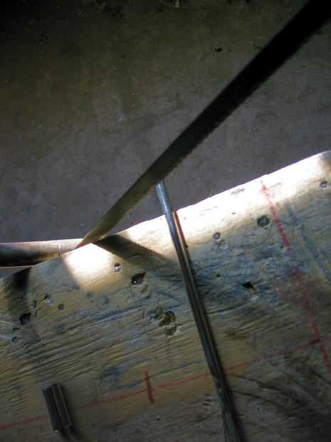 Cuando tubo fino corte toma una sierra y revertir la hoja así que los dientes apunten hacia usted. Ver foto 2. Deslice la sierra hacia adelante muy ligera al principio. Tal vez sólo adelante movimientos con él.