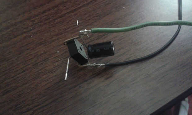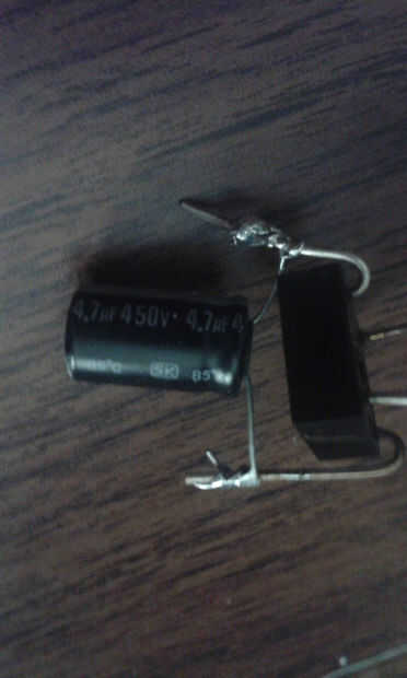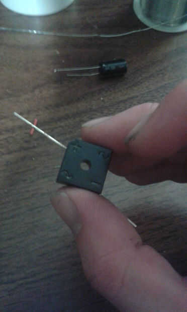 -En primer lugar localizar el puente del diodo. Buscar el + y - símbolos en él. Tomar los pols y soldarlos al condensador. Tomar nota de la polaridad y asegúrese de que esté conectado el condensador - a-del puente del diodo!