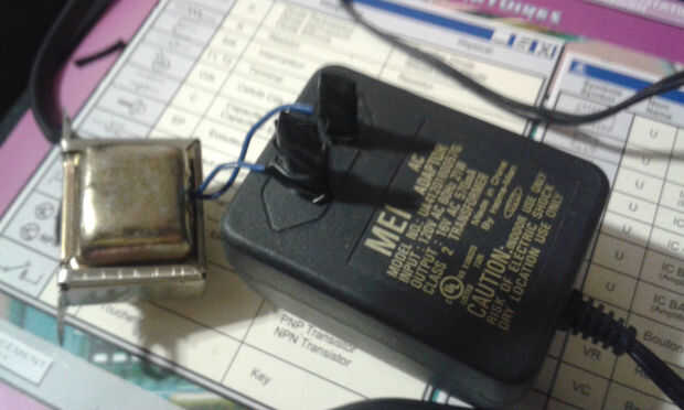 -Recuerde que el transformador de CA que es simplemente escalofriante, conectado a la biela generador simplemente no hacer nada! Bueno es hora de esto conectar el transformador que se retiró de la fuente de alimentación AC-DC. Ahora otra vez conectará a la inversa. Así donde el enchufe va desde el transformador de CA donde en el transformador suelto (el tirar del transformador AC-DC) sólo usé cinta para mantener todo envuelve los dos cables bien las encuestas de enchufe. Dejando la parte del enchufe del transformador suelto gratis. Puede cortar el enchufe y cortar las puntas de alambre. Su escalonada a tensión de punto va a ser aquí!