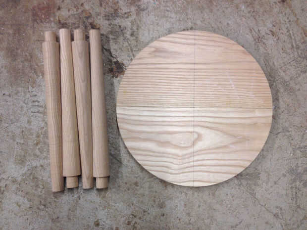 1) una tapa de madera - estoy usando un disco de 14" de ceniza que es 7/8" de espesor. Ya he unido, cepillada y en forma de círculo. Esto puede ser cualquier tamaño como puede caber en la plantilla de taladro que construir.