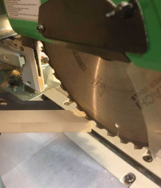3) luego corte 45 grados apagado uno de los extremos de cada una de las tiras MDF de 1".