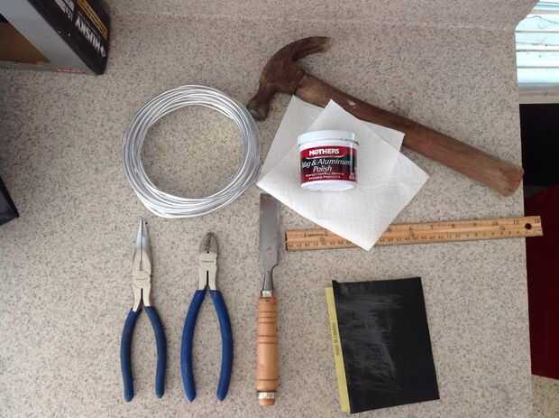 Bien, necesita pinzas (unos recortes y un alicate de punta fina), un martillo, una regla y suelda alambre *. Algunos son opcionales como el cincel y el polaco. El cincel puede sustituirse por algo duro a martillo, como un yunque. Y podría ser substituido el papel de lija con lana de acero o un archivo. También, el pulimento es sólo para dar el anillo un agradable brillo y acabado que, sin embargo depende de usted si desea utilizarlo o no.
