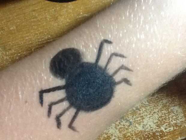 Tomar el pincel y cargar con pintura negra. Pintar alrededor de los bordes del círculo para hacer una línea limpia, luego dibujar las piernas y un óvalo para la cabeza. Parpadeará las piernas hacia abajo al final. (Ver foto)