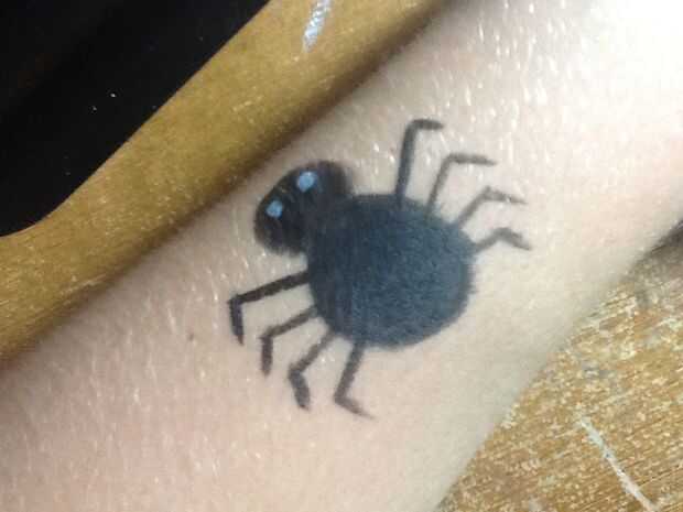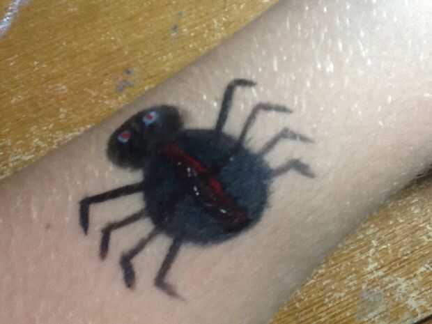 Ahora enjuague su cepillo o gancho agarrador uno nuevo y cargarlo con blanco. Pintar dos pequeños círculos blancos para los ojos. Entonces adelante y agarrar algunas rojo en tu cepillo y pintura dos pupilas rojas en los ojos y luego, si también lo desea, puede pintar un diseño de aspecto venenoso en el cuerpo. Dibujé a una especie de signo.