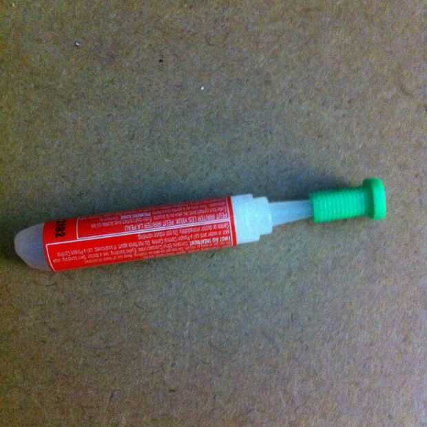 Con el pegamento de su elección seguros el "Bolo Slide" en la parte posterior del hardware. Siga las instrucciones en el paquete y tenga cuidado.