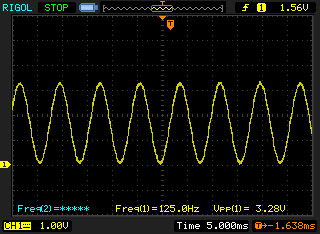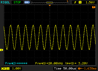 Conectar un osciloscopio (o contador de frecuencia o altavoz de alta impedancia como un altavoz auriculares) a través de los pines PORTB, 1 y 2. Debería ver una onda senoidal de amplitud de 3,3 v p-p. Ajuste el potenciómetro en sentido horario para aumentar la frecuencia de 125-20 KHz. contador de vuelta hacia la derecha para disminuir la frecuencia.
