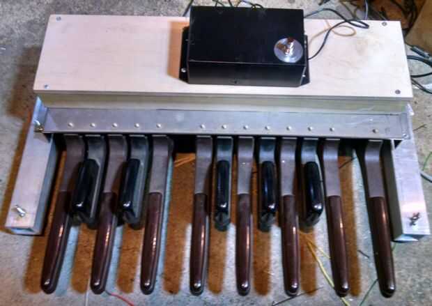 Así que el cuento es que una vez me di cuenta donde iban los diodos y la necesidad de cambiar una resistencia en el escudo de 64 botón, esto ha funcionado sin problemas (hasta ahora). Bien que no he tenido que poner en práctica "todas las notas de" que en su día solía ser vital para evitar que "se pegó las llaves" (es el interruptor del empuje de plata encima de la cubierta). Cabe mencionar que este sistema es polifónico, es decir puede jugar más de una nota a la vez. Mientras que esto no es todo lo que útil para pedales de bajo, a menos que tenga pies extras, este sistema se puede adaptar fácilmente a otros instrumentos, acordeón viene a la mente.