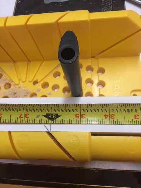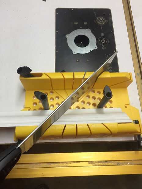 Otra vez, mayoría de la gente usaría una chop/Sierra para cortar la moldura. Pero son muy muy caros y puede ser un poco intimidantes. Por lo tanto, jefe de su ferretería local y comprar una caja de ingletes (lo amarillo) por menos de $10. O si lo tiene que pedir prestado a su amigos o vecinos.