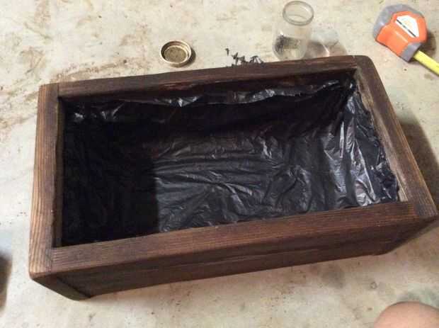 Tomar sobre plana pequeña de 10-15 cabezas de clavos y clavos en una línea de cerca de 1 pulgada de la parte superior del interior de su caja. Continuar en todos los lados para que la bolsa quede ajustada a la caja. A continuación coge el dispositivo de corte o cuchillo del EXACTO y corte la bolsa 1/2" de la también de las uñas todo el camino alrededor del borde de la caja. Cuando haya terminado le deberían ser capaces de doblar la 1/2" broca de bolsa sobre las uñas como una cubierta.