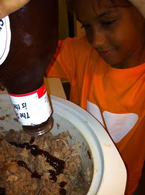 Hay muchas variedades de salsa barbacoa. Escoja su favorito o hacer tu propio si quieres y vierta. Uso tanto o tan poco como usted quiere conseguir el sabor que desee. Mezclar muy buena y es que tiene barbacoa sur real sabroso, picante y super fácil.