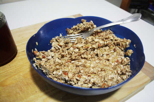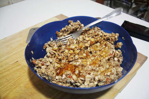 Mezcla con energía hasta que cada avena copos es parte de la masa.