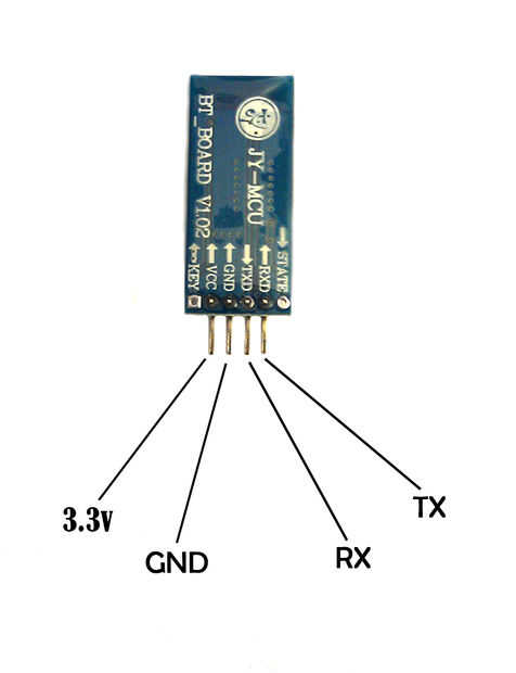 Agregar un Bluetooth módulo a nuestro proyecto es muy fácil. Simplemente conectar RX en el módulo de Bluetooth a TX en nuestra placa de Arduino, TX en el módulo es conectado al RX en el Arduino, GND obviamente conectada a tierra, y por último VCC se conecta a 3,3 voltios o 5 voltios dependiendo de su módulo Bluetooth.