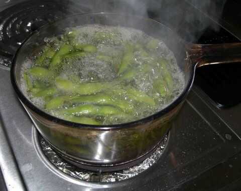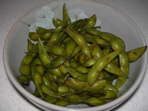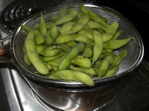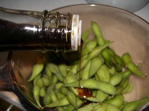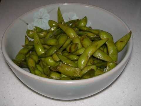 aquí es un snack saludable, delicioso que no tiene mucho tiempo para arreglar.  Edamame, soja verde, están en sus vainas. Puedes comprarlas congeladas o si tienes suerte sacarlos frescas de su jardín. Mediante la adición de condimentos, usted puede hacer esto tan sabroso. Todo el mundo va a encantar.