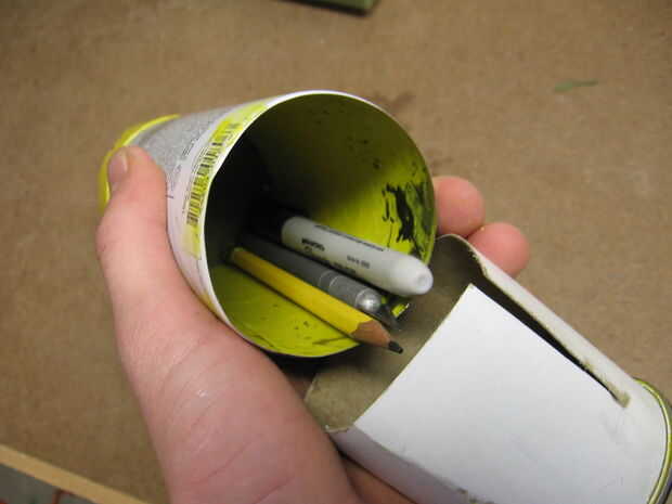 Crear un alijo escondido punto fuera de una lata de pintura regular con un abrelatas, camisa cartón y pegamento caliente.
