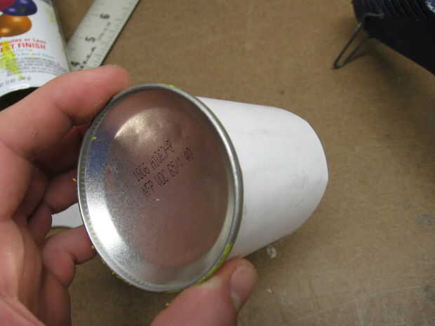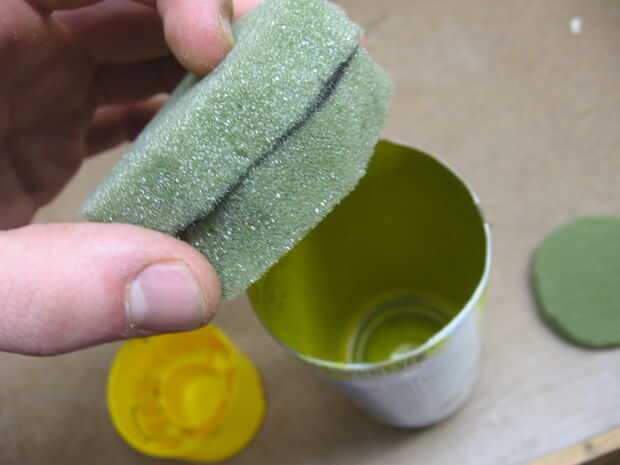 1. prueba de ajuste en la parte inferior de la lata de pintura y frote unos puntos en el interior de la can, tenga cuidado de no dejar que cualquier squish a través hacia el exterior, creando un ajuste incorrecto.