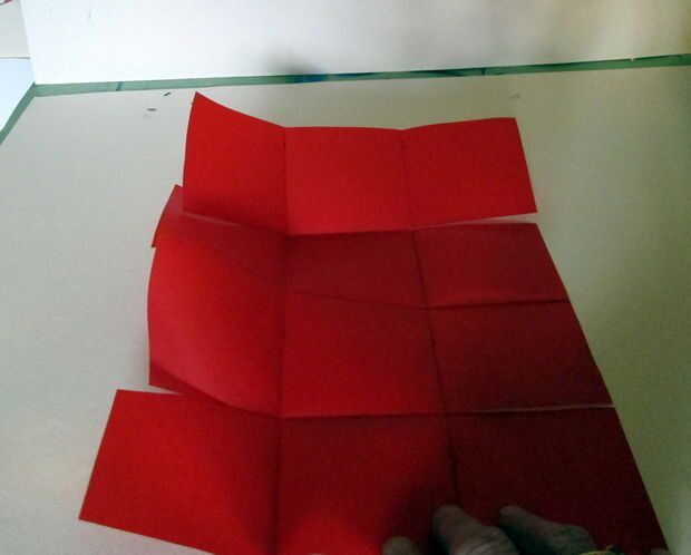 A dividir el papel en 4 y 3. Divida el papel en 4 en el lado más largo (en el ejemplo, el papel de 9 "x 12", dividiendo las 12" en 4). La otra dirección, el lado más corto se dividirá en 3 (9" dividido en 3). En dos de estas direcciones la respuesta es 3". Por esta razón el factor de éxito oculto funciona, porque si por ejemplo el papel es papel de copia estándar de 8,5 x 11, entonces esto no funciona sin un corte.