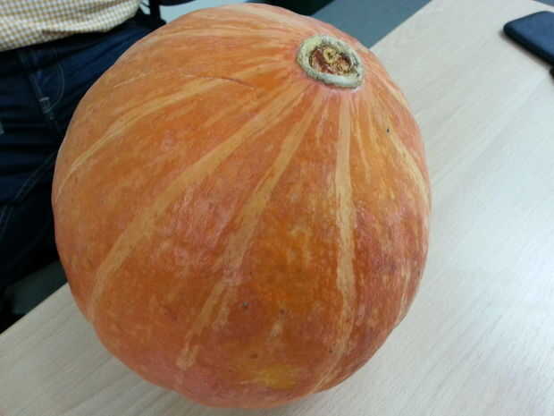 Elige una pequeña y una bonita calabaza limpia para que sea fácil de llevar a la oficina :)