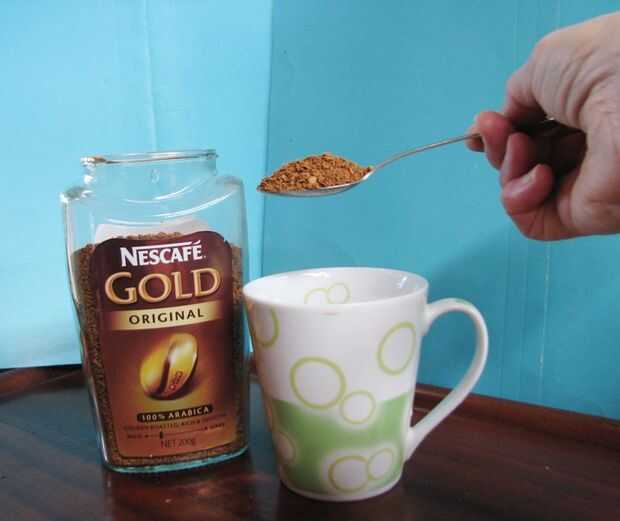 • Agregue el café en polvo/gránulos – más de lo habituales (yo uso una cucharadita colmada de grandes). Agrego mi edulcorante/azúcar en esta etapa.