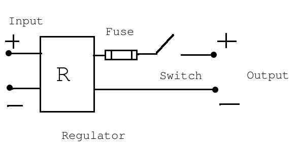 bobinas > diodos > regulador de voltaje > fusible e interruptor > tema para ser alimentado