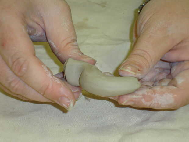 Al igual que nuestras piernas, suave los dos cuerpos de arcilla para conseguir una buena adherencia.