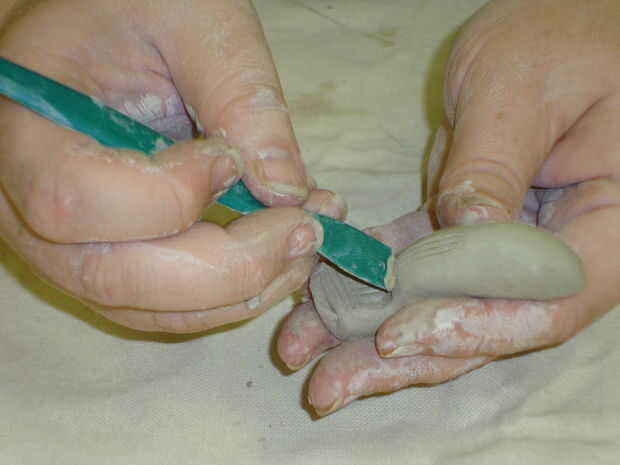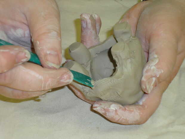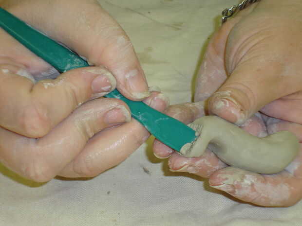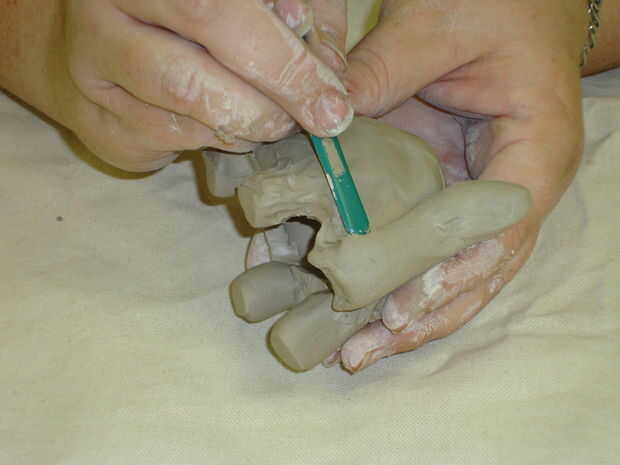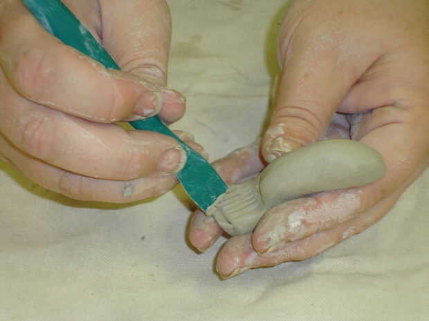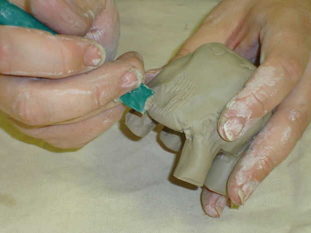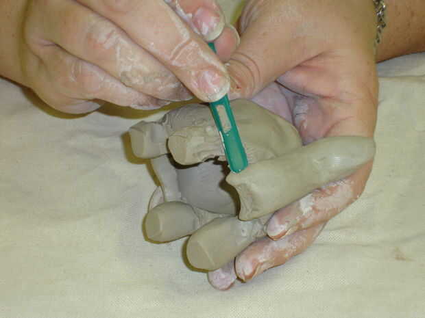 Scratch y puntuación de todas las áreas donde la arcilla se toque y fíjelos juntos.