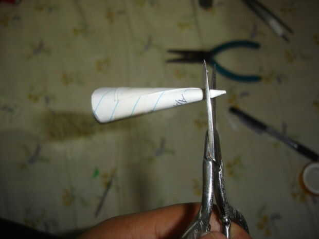 7 > Ahora pulse la uña en el cono con la ayuda de nariz pliar.