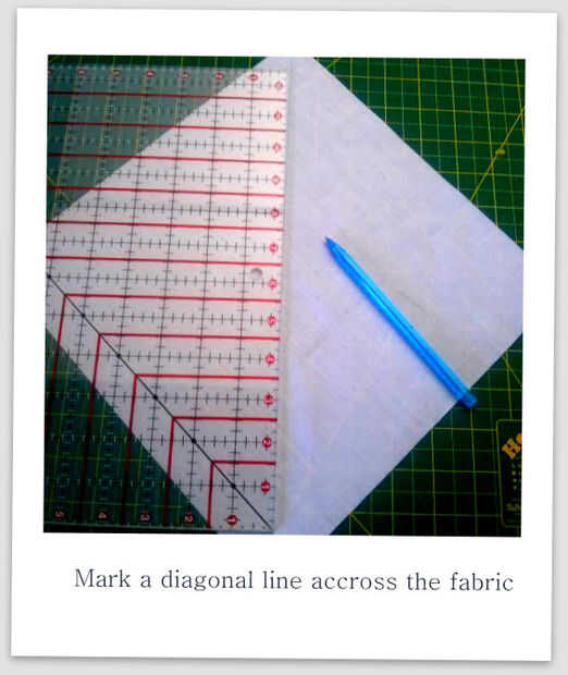 En todos los 10 de los cuadrados blanco y 5 de los cuadrados amarillo, necesita marcar una línea diagonal en el lado equivocado de la tela.