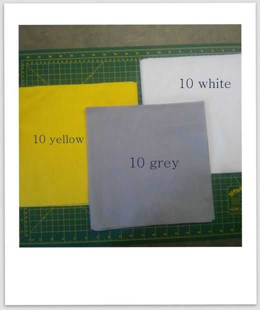 * Para el propósito de este tutorial utilizaré a tela de gris, blanco y amarillo. Puede elegir sus propio tres telas contrastantes, o copiar mío! *