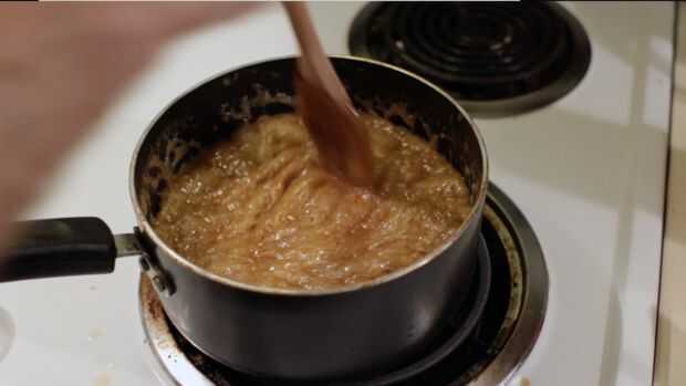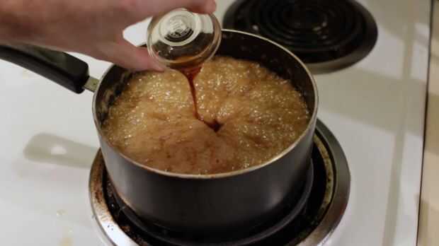Ahora apagar el fuego y añadir el bicarbonato y el extracto de vainilla. Luego revuelva juntos.