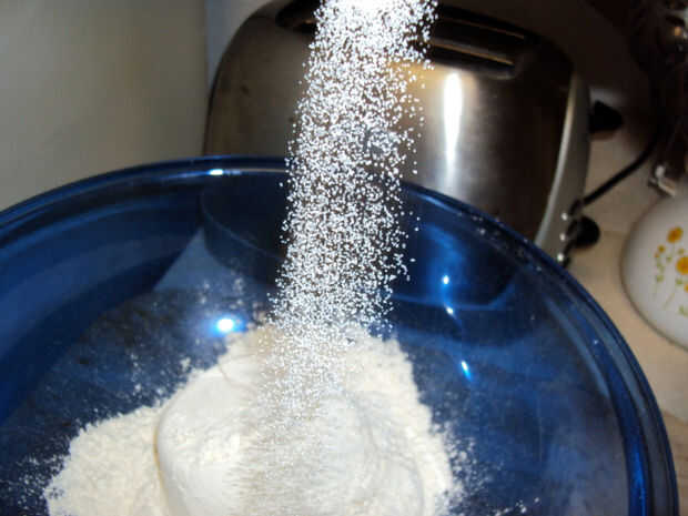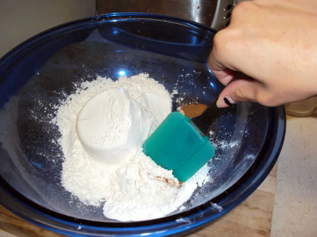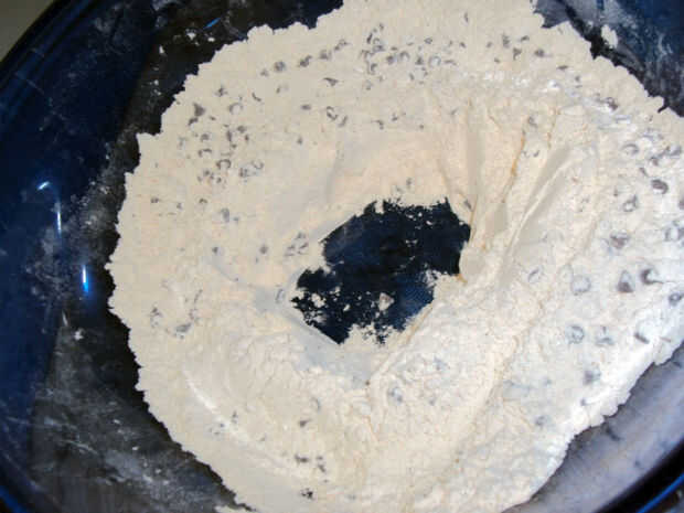 Más tarde, usted se se vierte el ingrediente húmedo en este agujero. Este agujero en el centro de los ingredientes de excavación hará envolviendo los ingredientes húmedos con los ingredientes secos luego mucho más fácil.