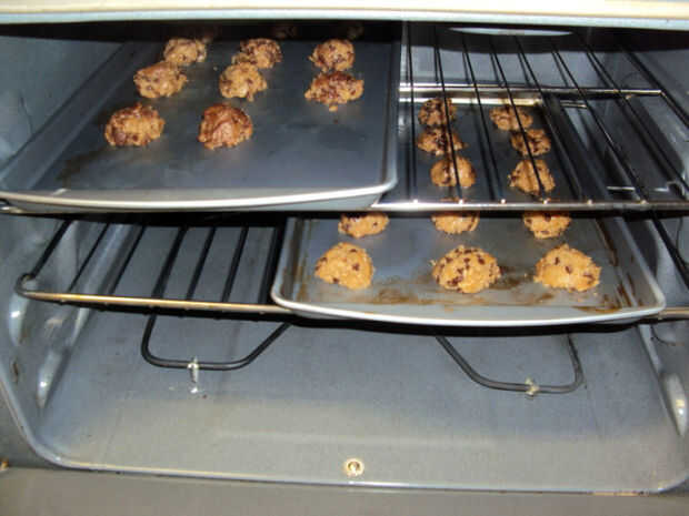 La receta perfecta para emergencias de cookie. Muy rápido para hacer. Revuelva todos los ingredientes en un bol, una cuchara sobre una bandeja forrada, hornear y comer. No hay mantequilla para ablandar (mantequilla de maní que utiliza en su lugar) y