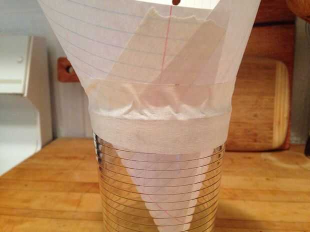 Coloque el cono en el vidrio para que el fondo está centrado sobre el vinagre. Suavemente de la cinta los bordes hasta el borde exterior del vidrio por lo que no hay ninguna ruta de escape.