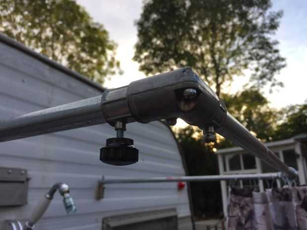 2. Quite uno de los pernos en cada 90 grados conjuntos y reemplazar con un tornillo de pulgar (ACE Hardware tenía en sus depósitos de zona de tornillo.