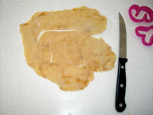3) estirar la masa extra (tienes suficiente extra) y recortar las letras (yo soy fácil). Con un cuchillo corte el símbolo para pi. Coloque las letras y el símbolo utilizando agua como pegamento.
