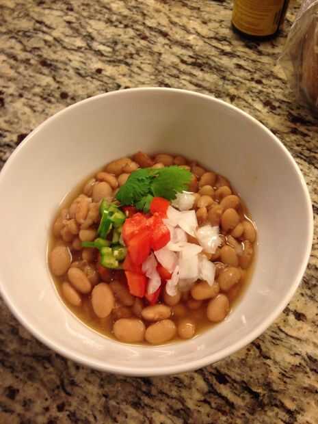 Mi familia siempre tiene la costumbre de servir frijoles con rarnish cruda como se ve en la foto. La guarnición de la materia prima consta de cebollas picadas, los tomates, chiles serranos y cilantro. Servir caliente la tubería y disfrute simple bondad de frijoles.