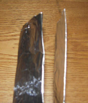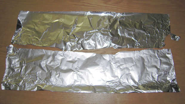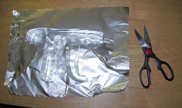 A continuación, corte un trozo de papel de aluminio y colocar en el molde. Asegúrese de que tener suficiente espacio alrededor del molde. Hacer pequeños cortes en la pieza de fondo de papel de aluminio va hacia adentro hacia el molde. A continuación, doblar el el papel de abajo hacia arriba y sobre el borde del molde. Esto es para reforzar la resistencia del molde. Repita esta parada y añadir estaño si es necesario. Al final usted tendrá un molde más fuerte y podrá perfeccionar la forma que desee.